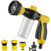 - 【Multifunctional】The water sprayer is equipped with a foam storage device, which can hold 100 ml of liquid. There are 8 types of nozzles (conical spray, coarse spray, oblique angle spray, fan spray, multi-point spray, fine column spray etc), which can be used for different purposes. For example: watering plants and lawns, watering terraces, car washes, pet showers, etc.