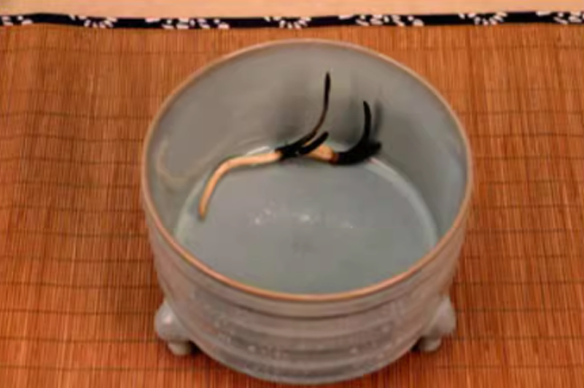 – Use your hand or a small tray underneath to soften the flow and avoid disturbing the rhizome.